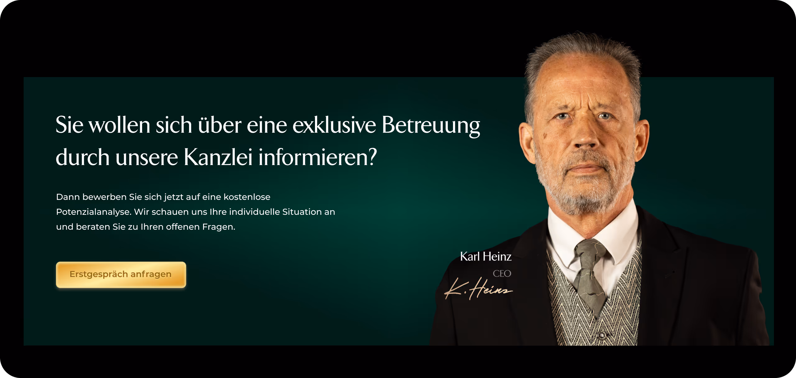 Die bisherige Online-Präsenz war zwar informativ, doch es fehlte an visueller und technischer Exzellenz, um die klare Positionierung der Kanzlei überzeugend zu transportieren. Anfragedaten mussten manuell erfasst und intern weitergeleitet werden – ein Prozess, der fehleranfällig war und wertvolle Zeit des hochqualifizierten Teams kostete. Diese Defizite erschwerten eine skalierbare Mandantenakquise und standen im Widerspruch zum High-End-Anspruch der Marke.