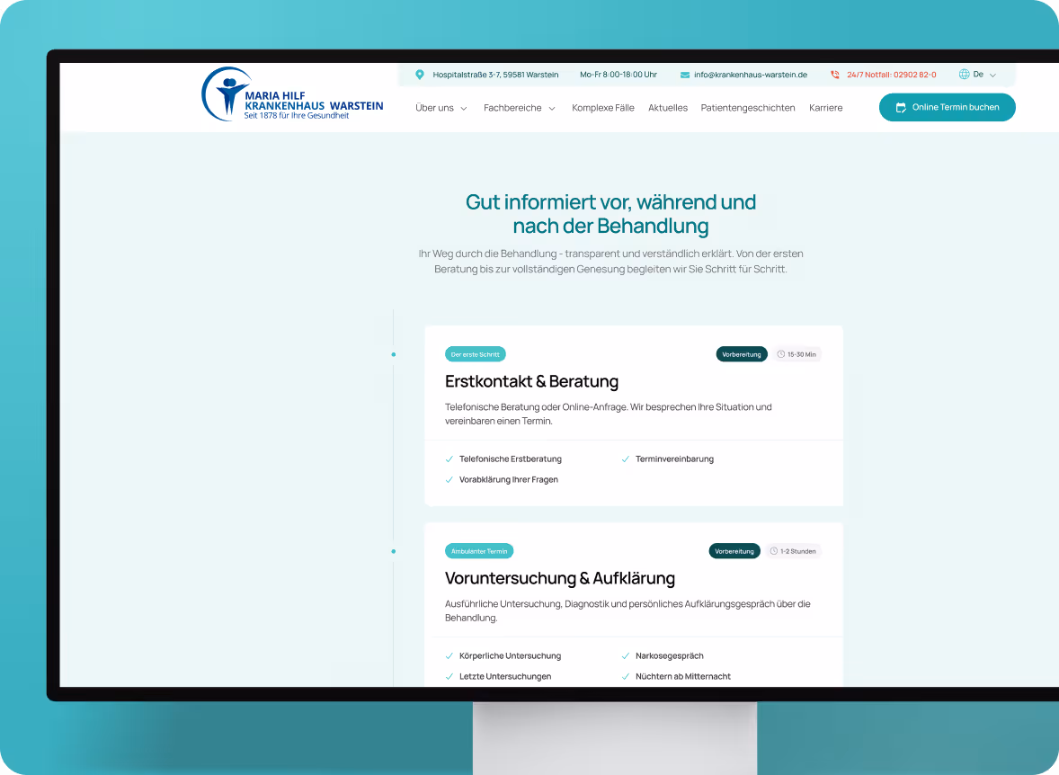 Unsere Aufgabe war es, eine moderne, patientenorientierte digitale Plattform zu schaffen, die medizinisches Vertrauen vermittelt und das Krankenhaus als attraktiven Arbeitgeber in der Region positioniert.